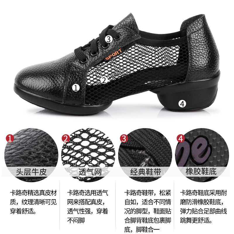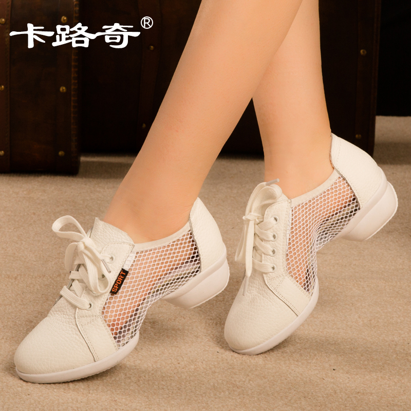 Karuchi dance shoes women's 2022 spring new mesh breathable dance shoes leather soft bottom jazz square dance shoes