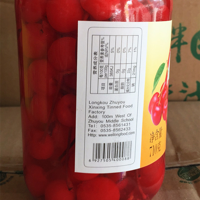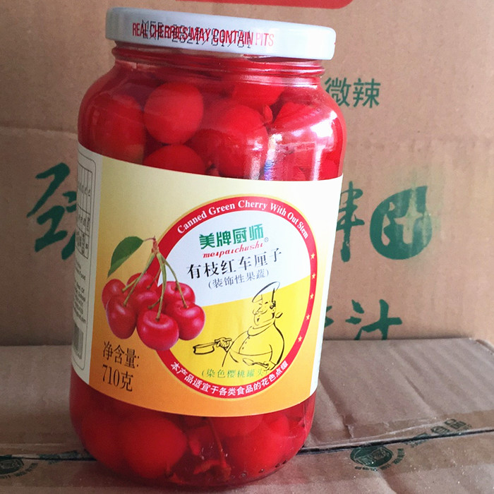 Baking Raw Material Red Cherry Canned Beauty chefs with branches red green carts 710g decorative fruits and vegetables