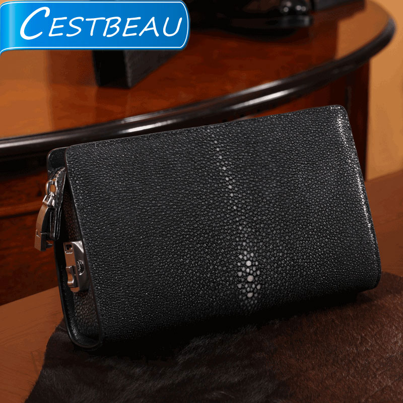 cestbeau deep-sea pearl fish leather handbag for men with code lock business casual genuine leather wallet black