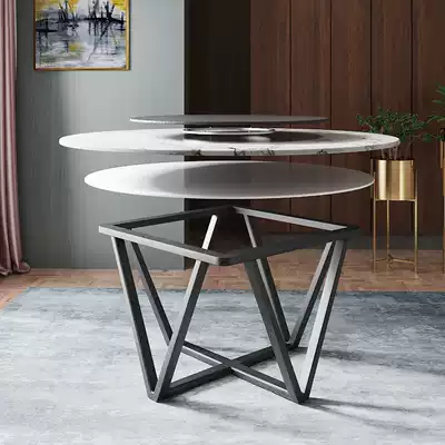 Solid wood marble round dining table and chair combination Nordic simple designer model room household round dining table with turntable