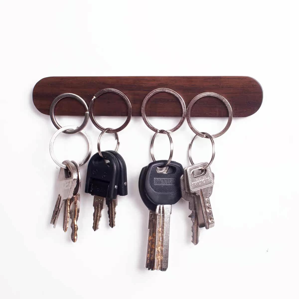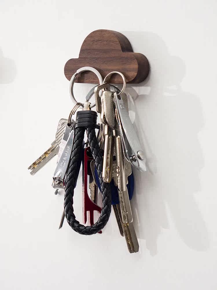 Solid wood creative magnetic suction key receipt line fixed on the wall without punching porch strong magnet 3M sticky hook storage