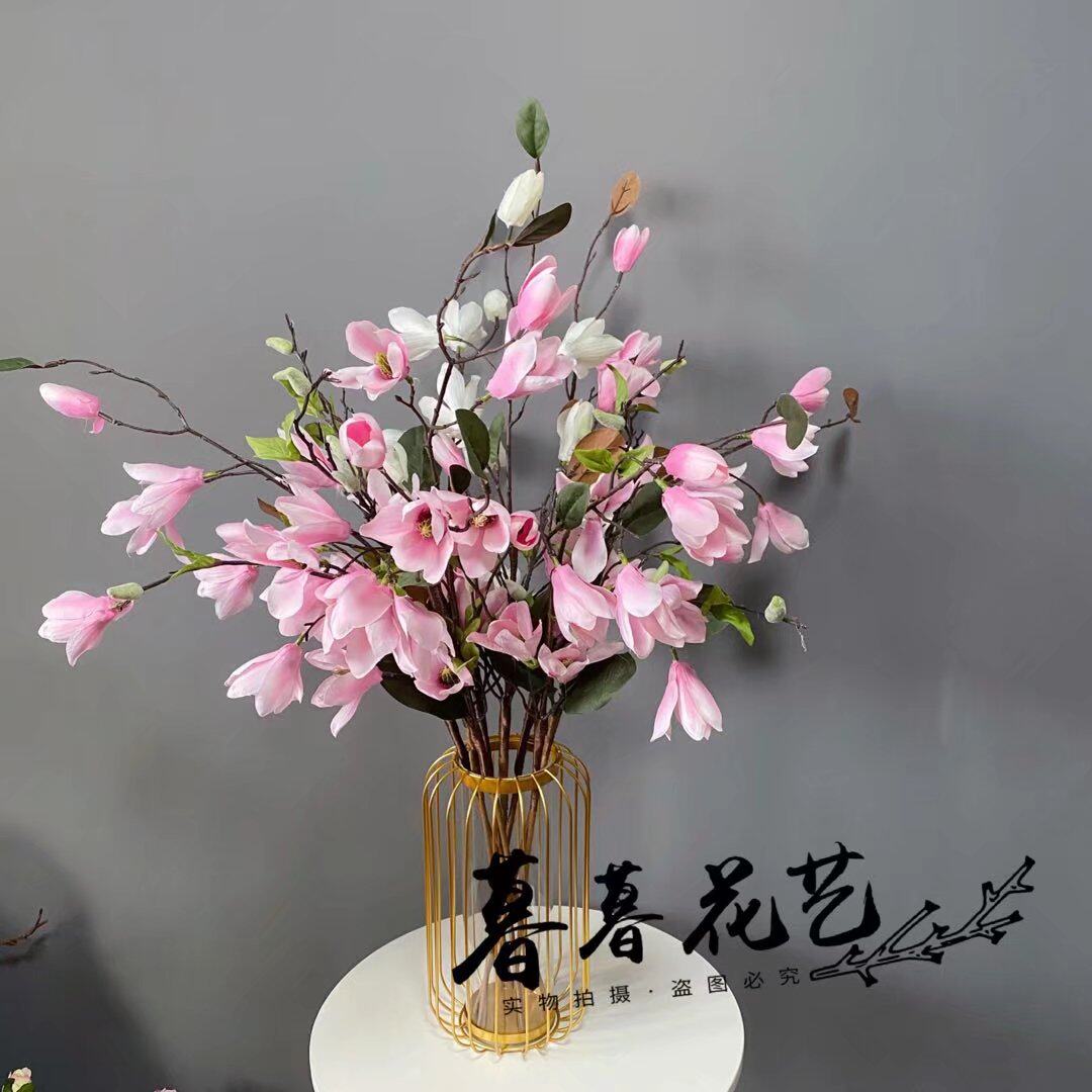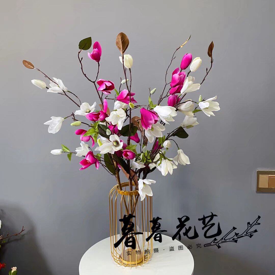 Single simulation magnolia fake flower with leaves indoor living room decorative flower decoration drying flower decoration flower arrangement plant flower art