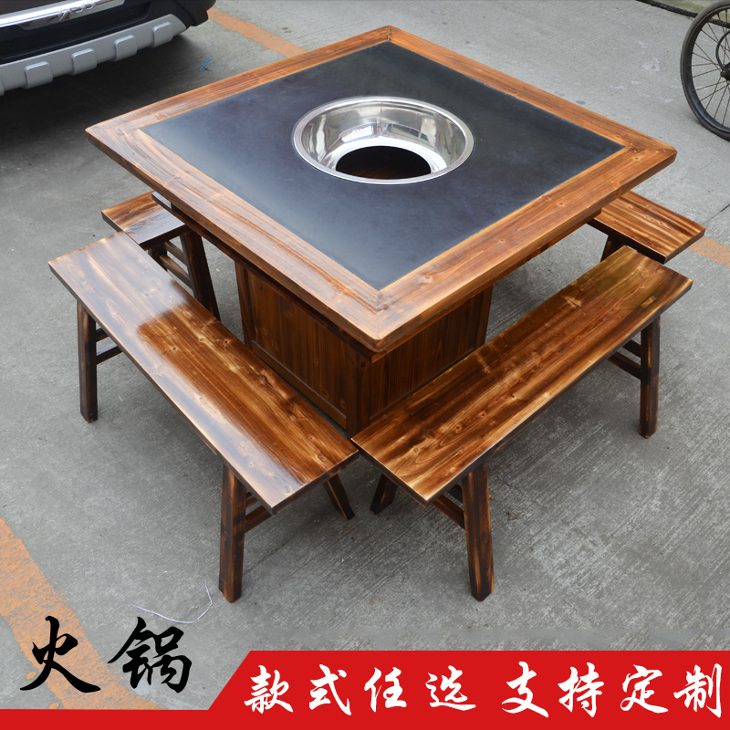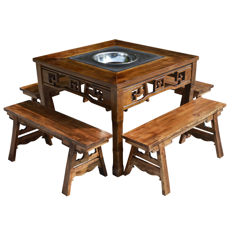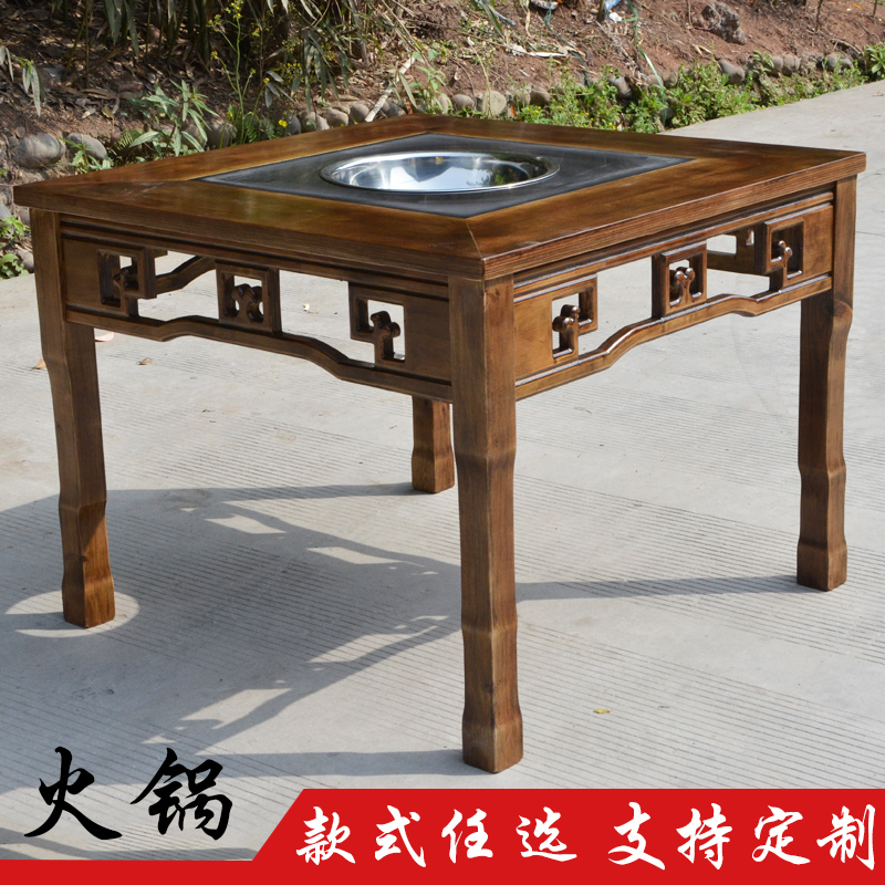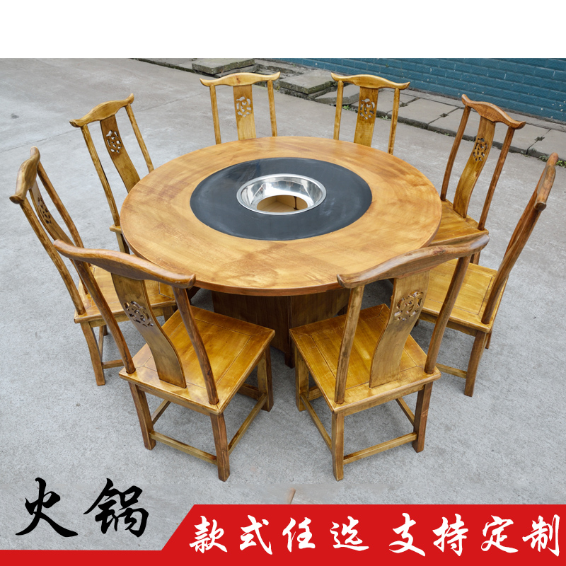 Custom marble hot pot table and chairs solid wood retro hot pot table induction stove integrated commercial hot pot table combination