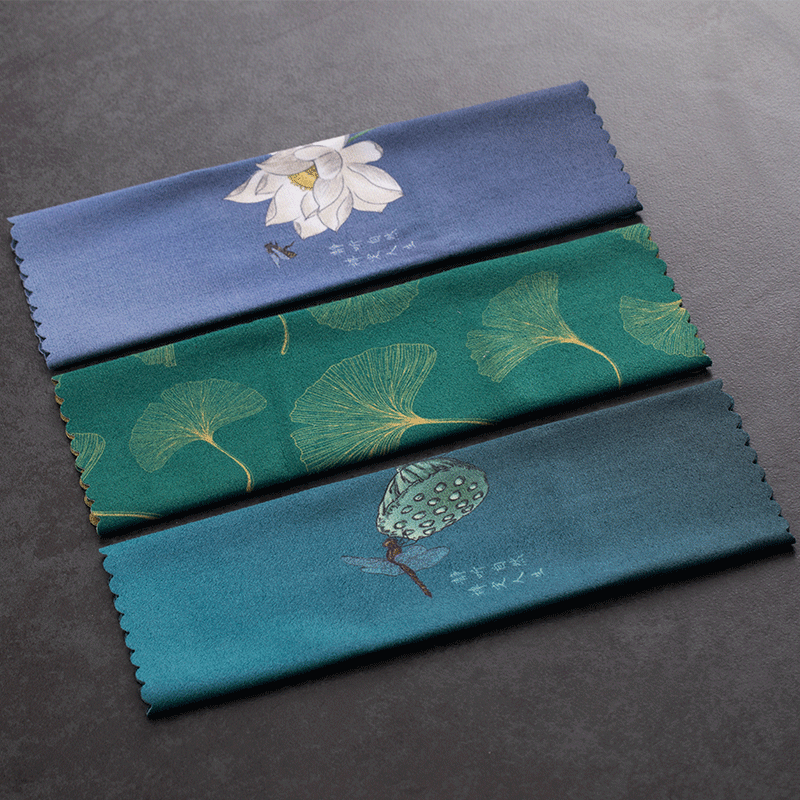 Blue color painted lotus tea towel Blue color painted lotus tea towel Yellow color painted orchid tea towel Red color painted Fu zi tea towel Brown painted bamboo leaf tea towel Green painted apricot leaf tea towel
