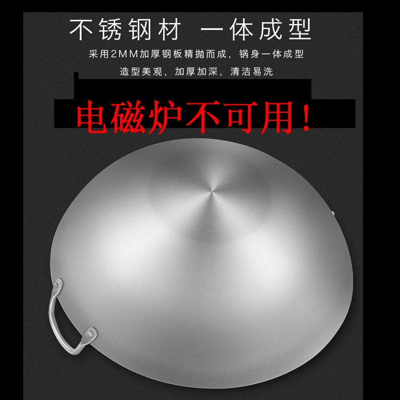 Extra-thick no magnetic stainless steel frying pan extra-large 34-100cm double ear round bottom burst fried tripod commercial canteen rural cauldron