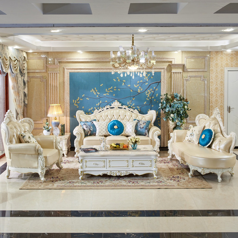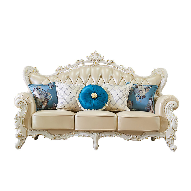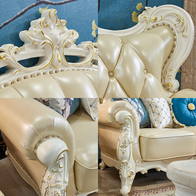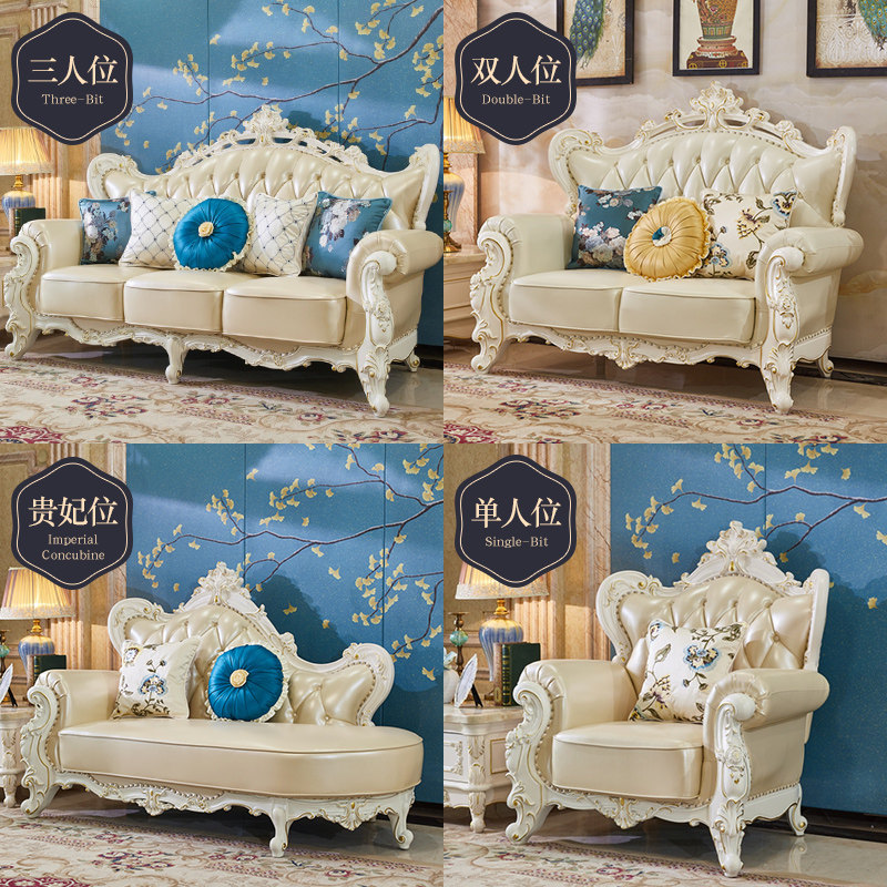 European-style leather sofa living room combination solid wood furniture French top-layer cowhide luxury carved leather art sofa