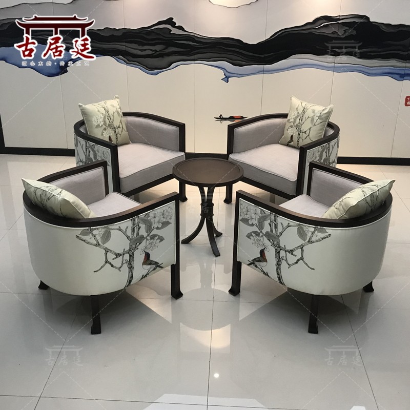 New Chinese Sample House Display Center Negotiation Table And Chairs Hotels Clubhouse Beauty Institute Reception Negotiation Table And Chairs Solid Wood Single Sofa Chair