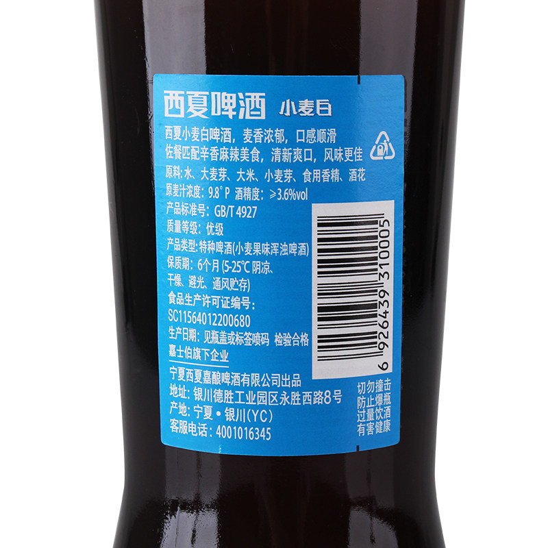 Xixia wheat white 465ml * 12 bottles of beer Ningxia wheat craft beer glass White Beer