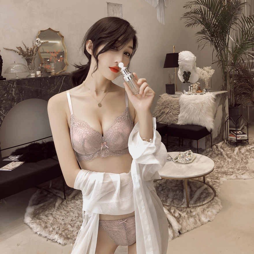 Lace sexy underwear set without rims gathered small chest thin section closed pair of breast adjustment type on the trust incognito underwear women