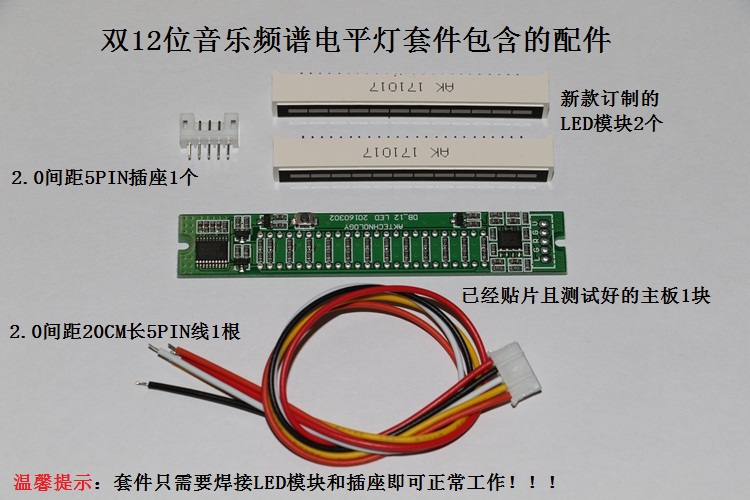 Dual 12-bit dual-channel LED music spectrum level indicator (7 green 2 orange 3 red) audio LED indicator