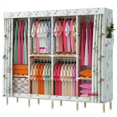Wardrobe simple cloth cabinet rental room solid wood assembly reinforced Oxford fabric household simple modern storage storage cabinet