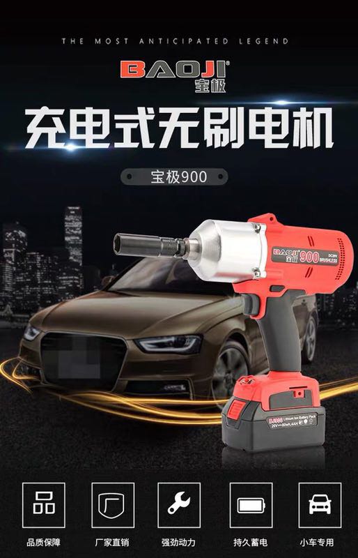 Baoji 900Nm large torque lithium battery wrench brushless lithium battery wrench flashlight cannon electric screwdriver tire wrench