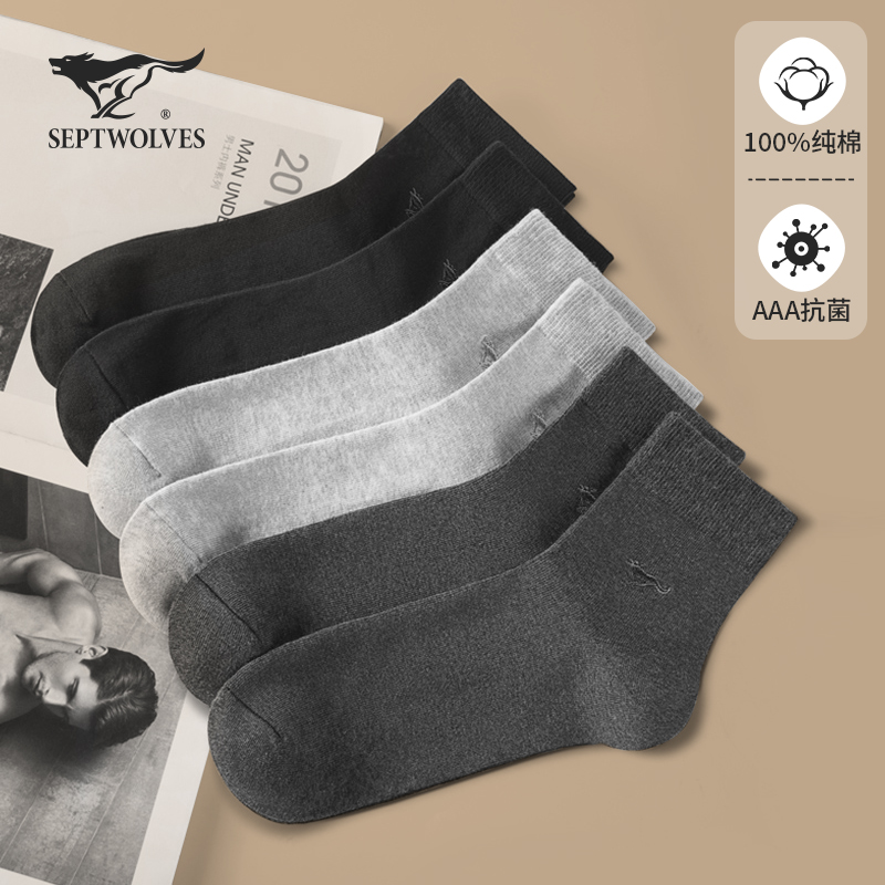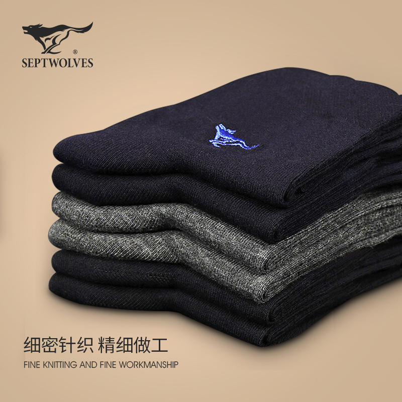 Seven wolves cotton socks men's wear-resistant socks sweat-absorbent breathable cotton socks winter sports socks thick stockings