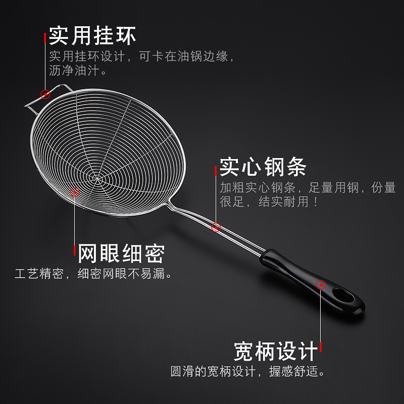 304 stainless steel plastic handle long handle colander Household kitchen leaching artifact fried mesh basket fried basket for hot pot