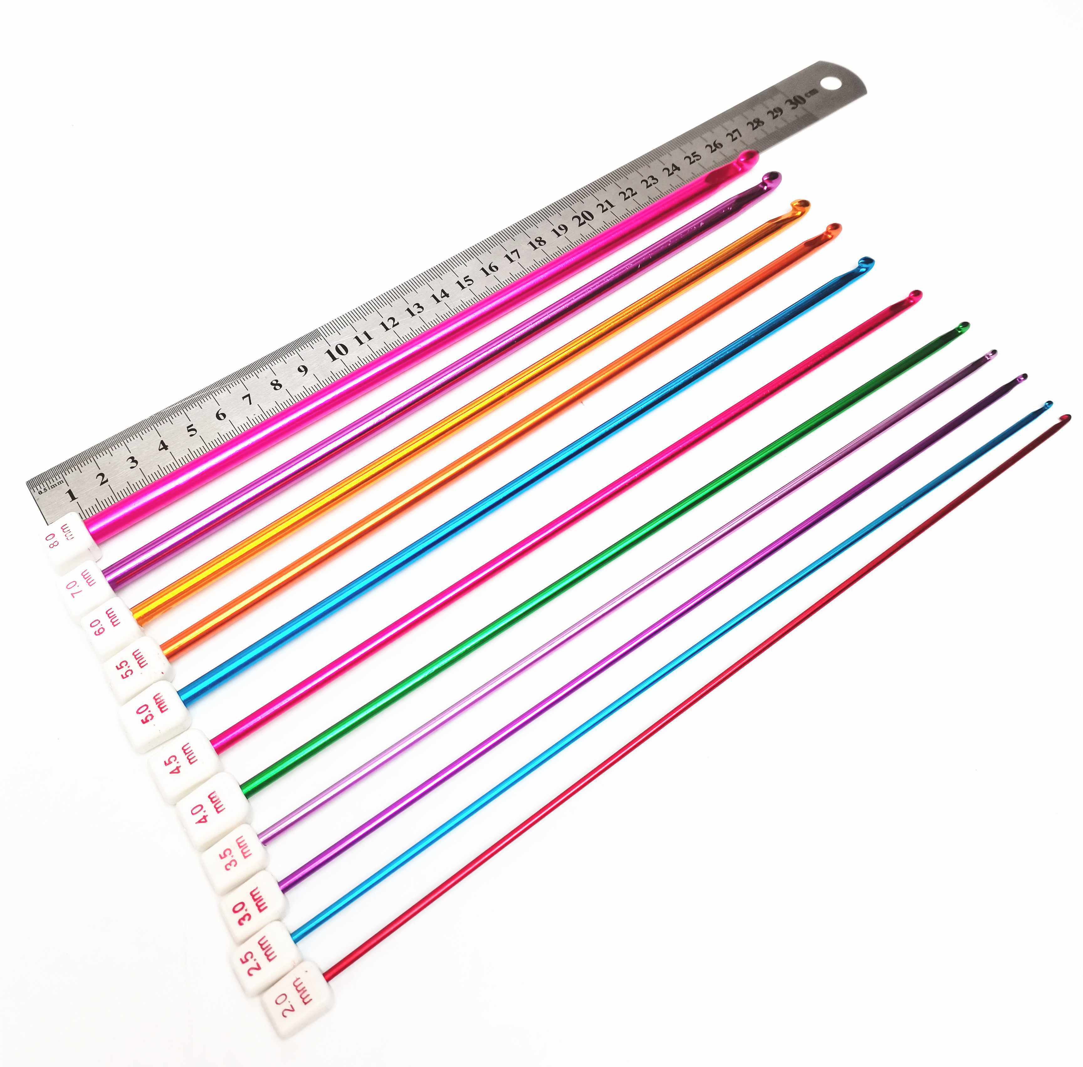 Household Crochet Tools Afghani Colorful Beaded Aluminum Crochet Set Wool Sweater Bold Long Needle - Taobao