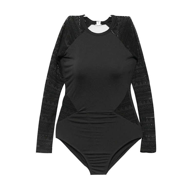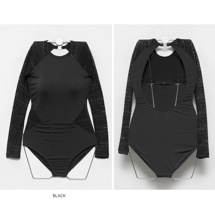 Han Edition New Black Wears Swimsuit Sexy Lace Long Sleeve Sunscreen Back Short