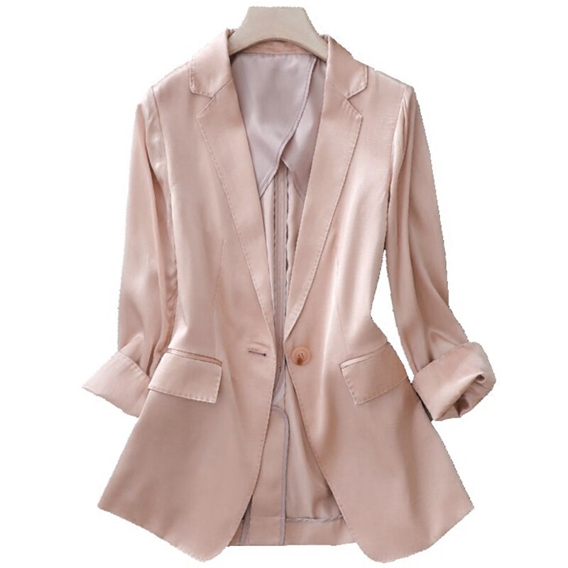 Day Ensemble Women's Clothing Temperament Extraordinary Pituality Bronze Ammonia Silk Small Suit Jacket Manicure 2019 Summer West Suit Women's Slim Fit