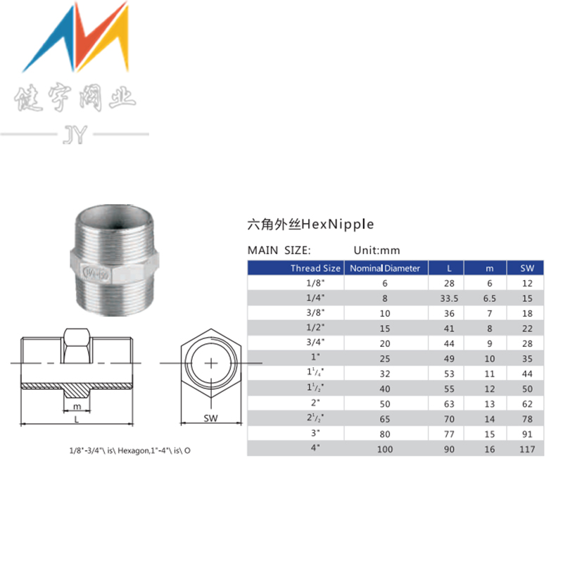304 stainless steel hexagonal outer wire internal connection to the wire joint direct double-head outer wire pipe hoop inner wire round pipe joint 4 points