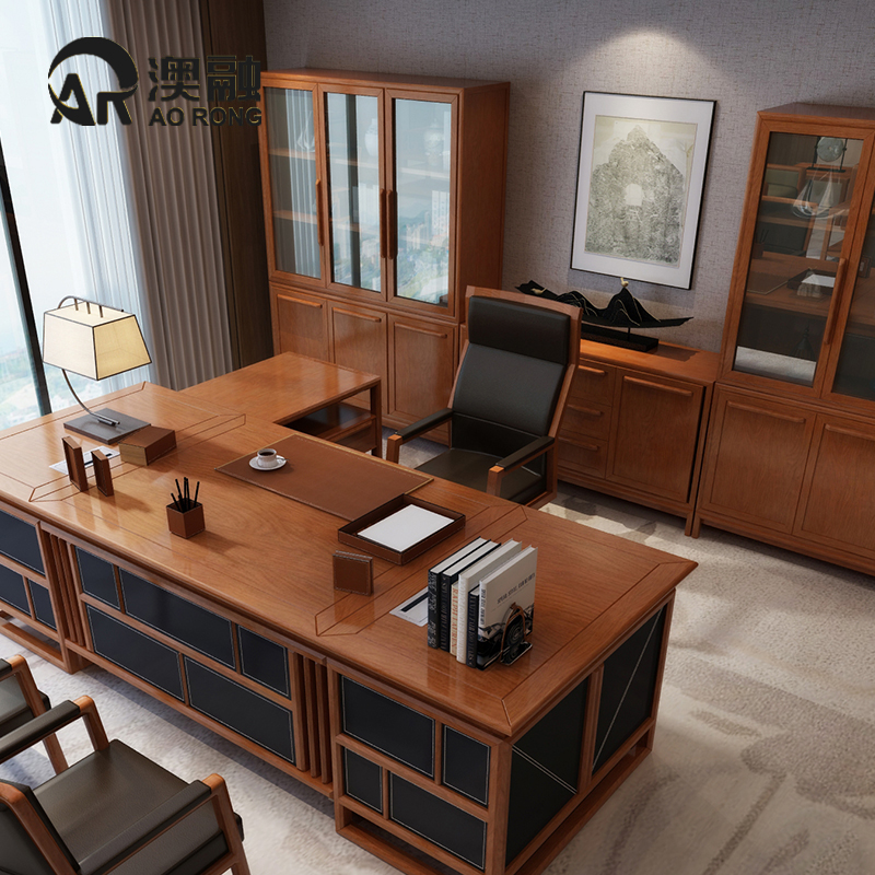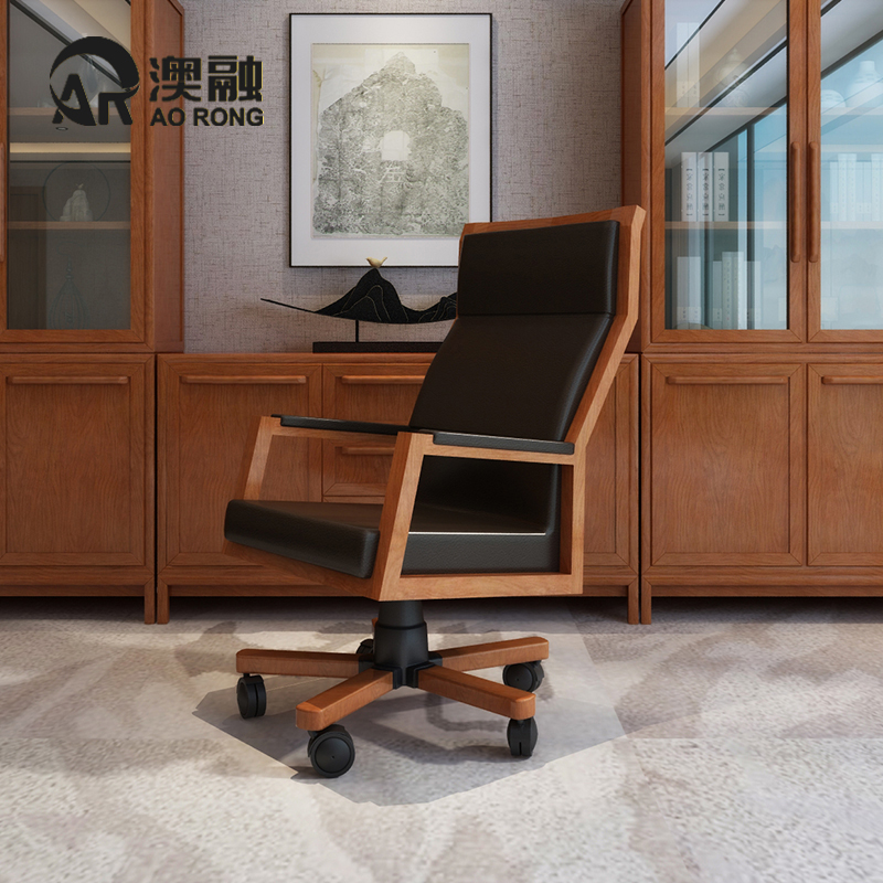 New Chinese Solid Wood Owner Chair Business Real Leather Desk Chair Swivel Chair Brief Modern Large Class Chair Office Furniture