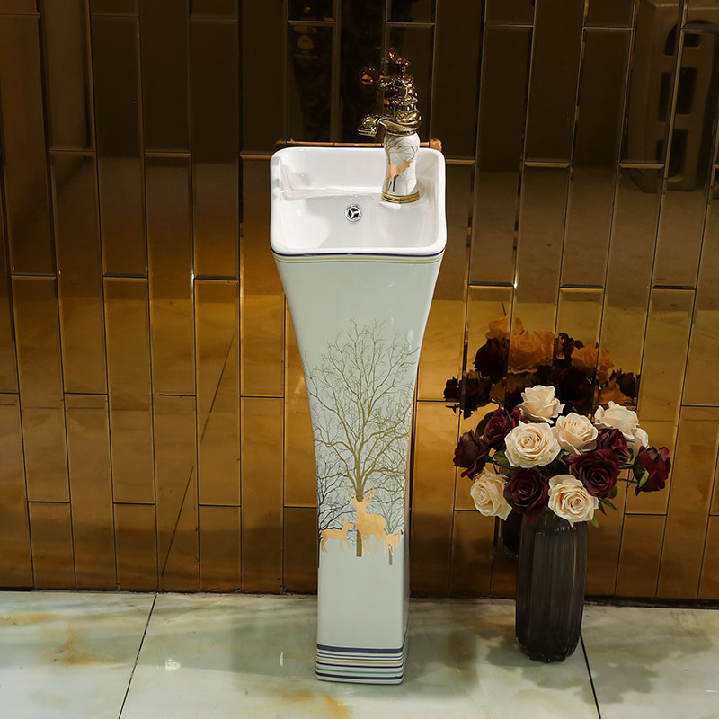 Ceramic column wash basin basin one household floor-to-pillar basin cosmetic room vertical tablet gold deer