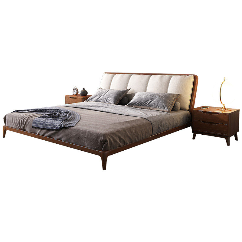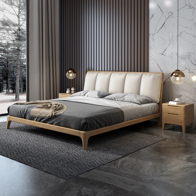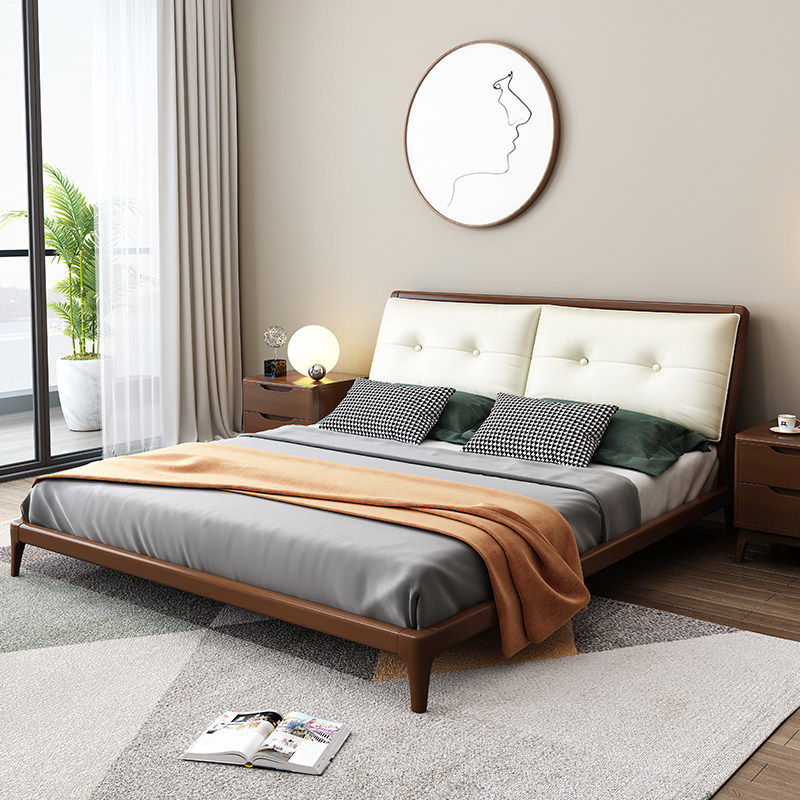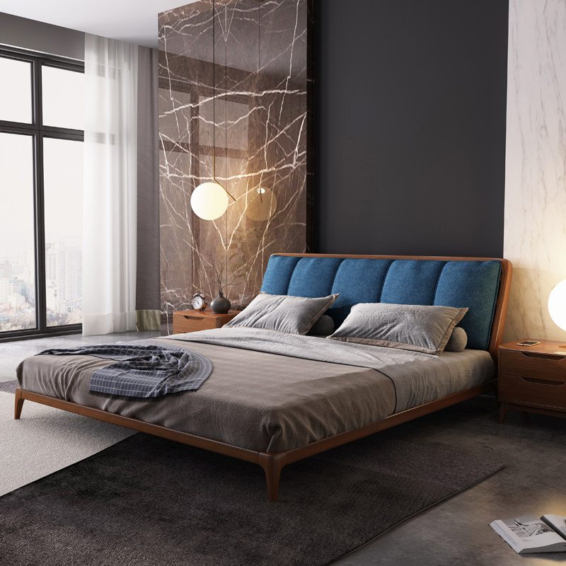 Solid wood bed 1 8 meters double modern minimalist wedding bed master bedroom furniture Nordic fabric solid wood big head cabinet latex mat