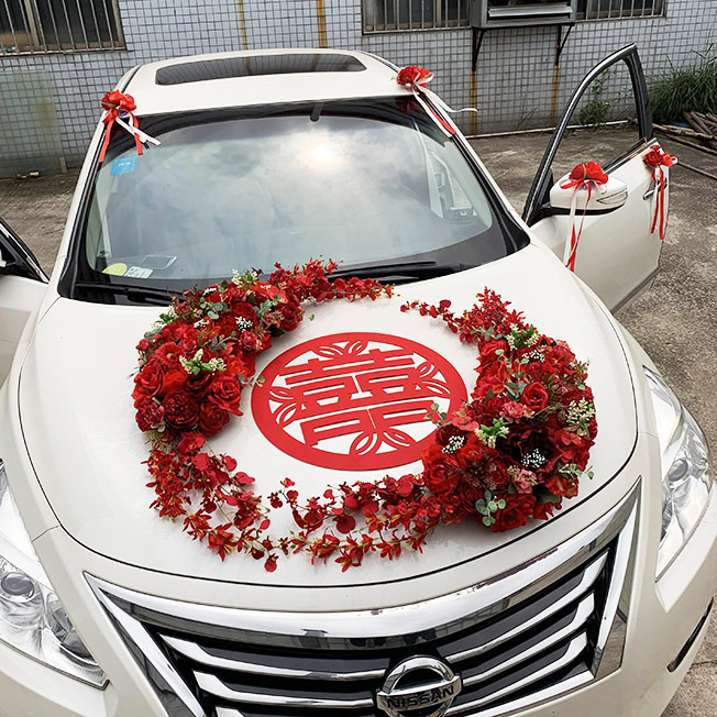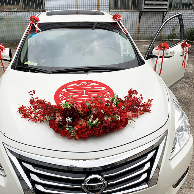 Double-month double-knot wedding car package single-month double-knot wedding car package Moon bud knot wedding car package red rear mirror car door flower one (matching price) 50cm wedding car double-happiness (matching price)
