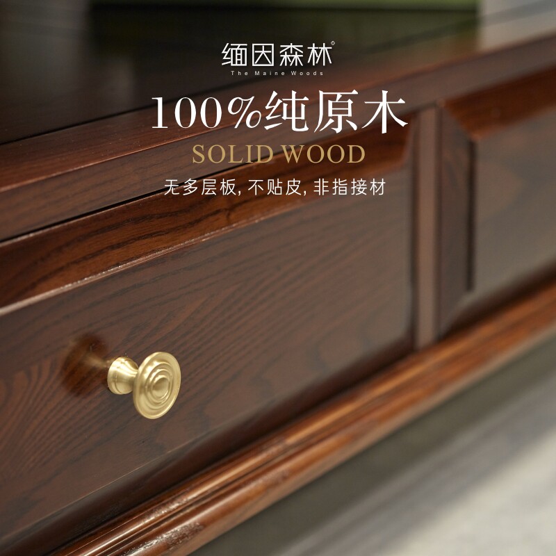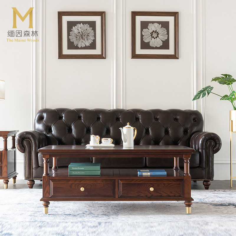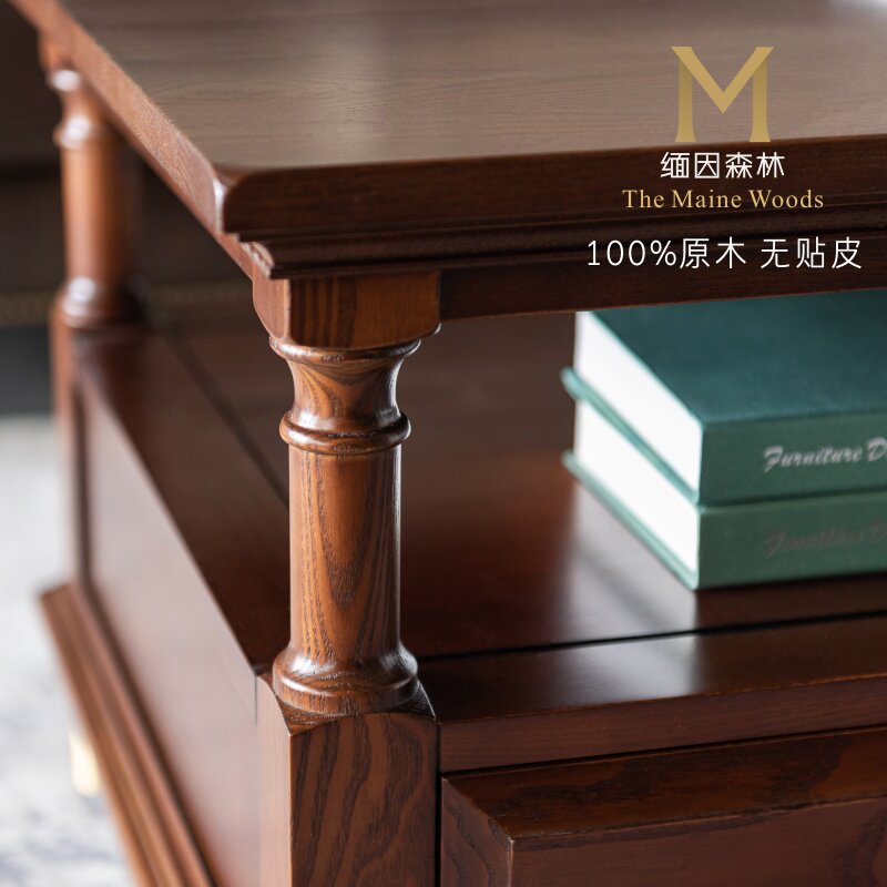 Maine forest solid wood coffee table American style home living room furniture combination light luxury pure solid wood black walnut square