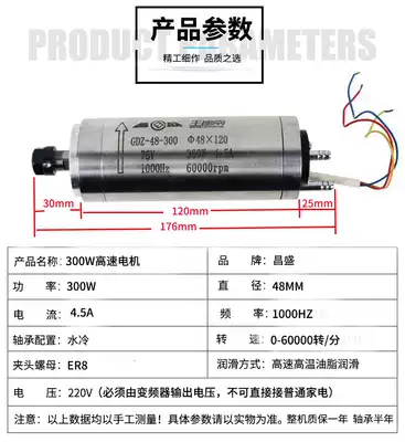Engraving machine spindle motor 300w48 diameter 60,000 to water-cooled PCB engraving machine spindle, high precision and high speed motor