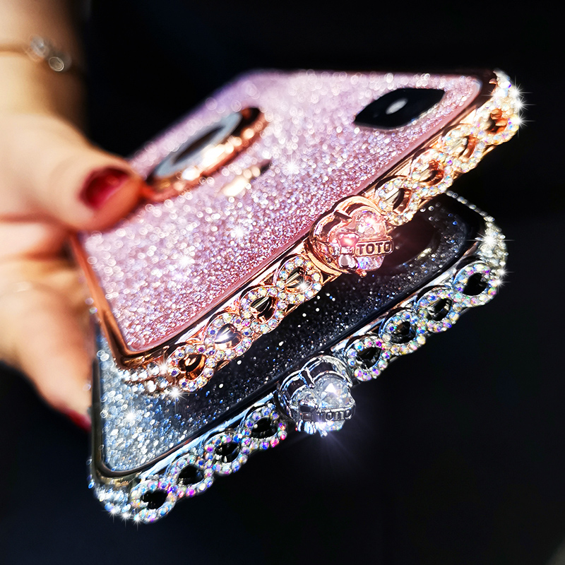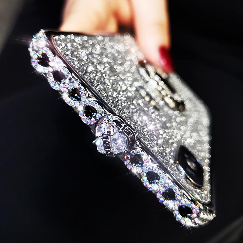 Suitable for apple x mobile phone protection shell water drill rims new iphone8plus inlaid drilling rims 7plus personality shiny metal inlaid drill flash powder film 6Plus anti-fall full pack 6s net