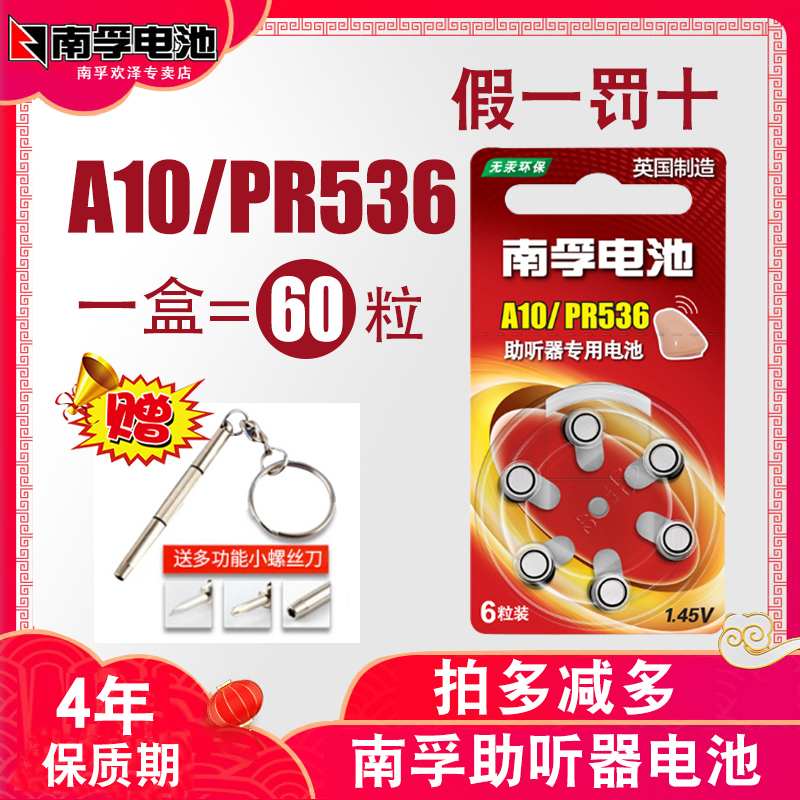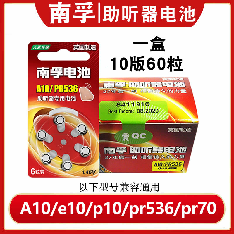 Nanfu hearing aid battery A10 PR70 zinc air button battery PR536 p10 old ear back type e10 artificial cochlear hearing aid electronic 1 45v boxed 60 grain -
