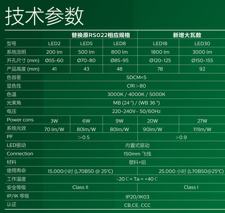 RS100B 3W neutral light 4000K bore 55mmRS100B 3W warm light 3000K bore 55mmRS100B 6W neutral light 400