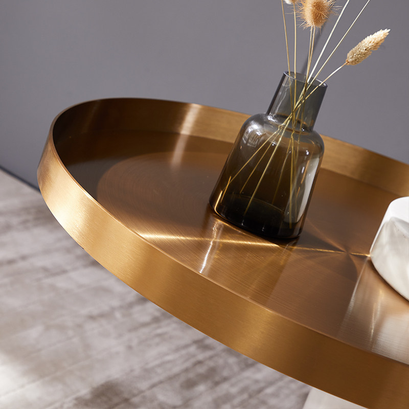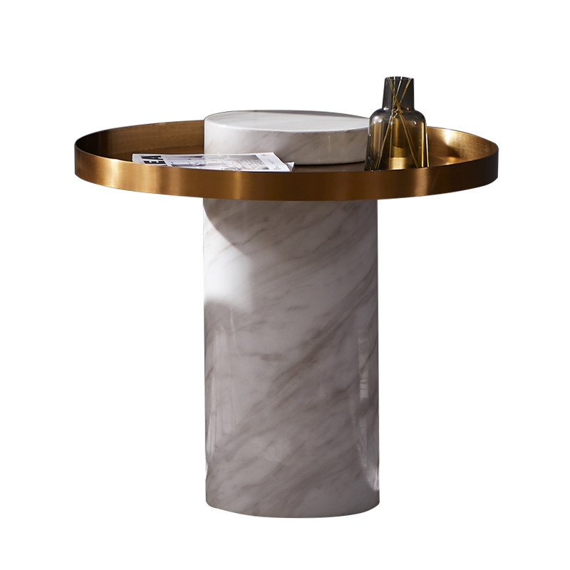 Nordic light luxury creative stainless steel marble cylindrical sofa side several modern simple living room small apartment small tea table