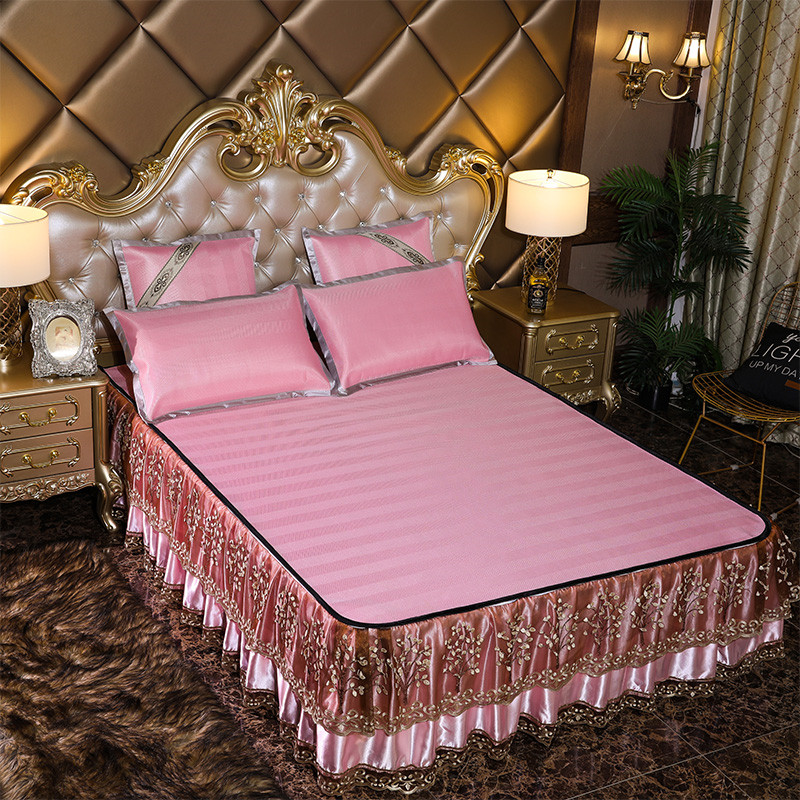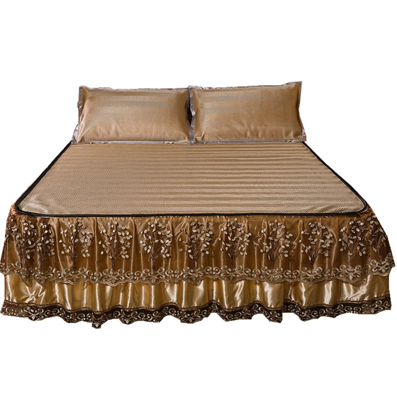 Summer washable ice silk mat, bed skirt, European-style bedspread, three-piece set of 1 8m foldable and washable rattan mat