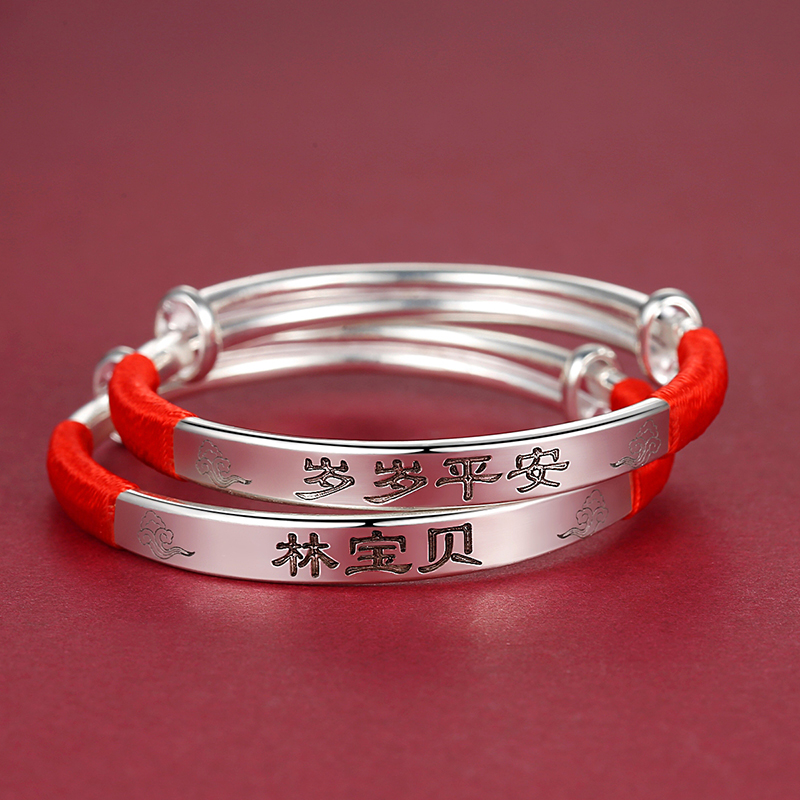 Baby sterling silver bracelet Baby full moon 999 bracelet Men and women children children lettering custom couple love gift