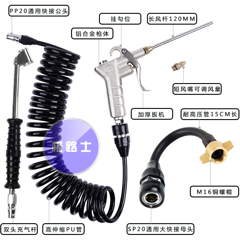 Extreme Luther Truck Blow Dust Gun Suit Wagon Tire Inflation Blow Grey PU Pipe Air Filter Blow Ash Gun