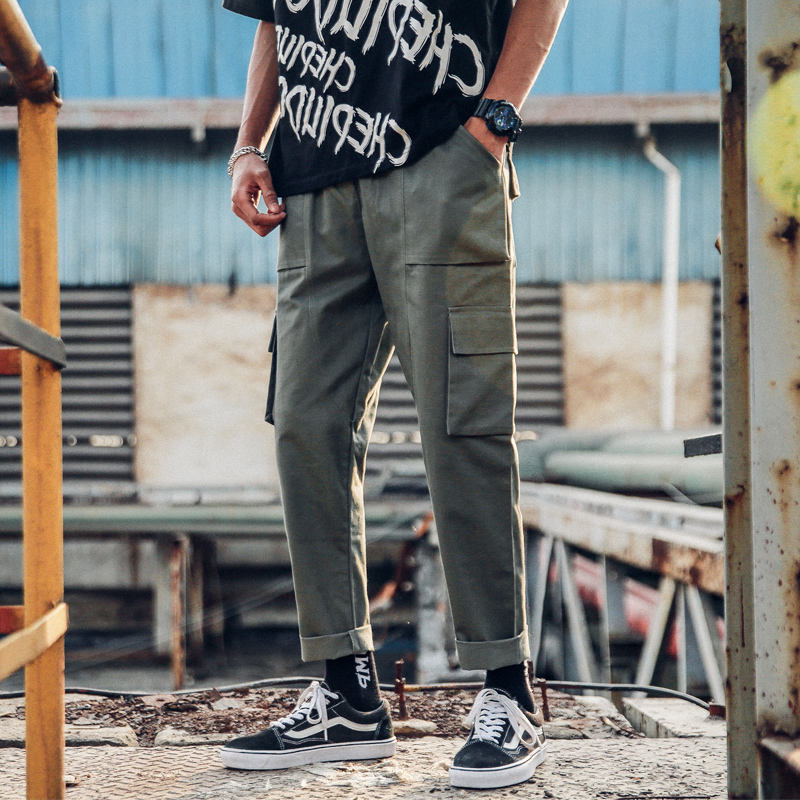 Overalls men's high street ins tide brand flow casual trousers 2021 new spring and autumn and summer nine-point pants thin section