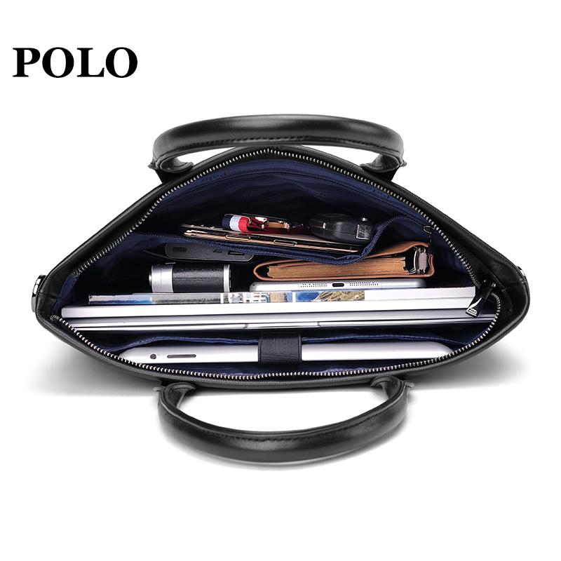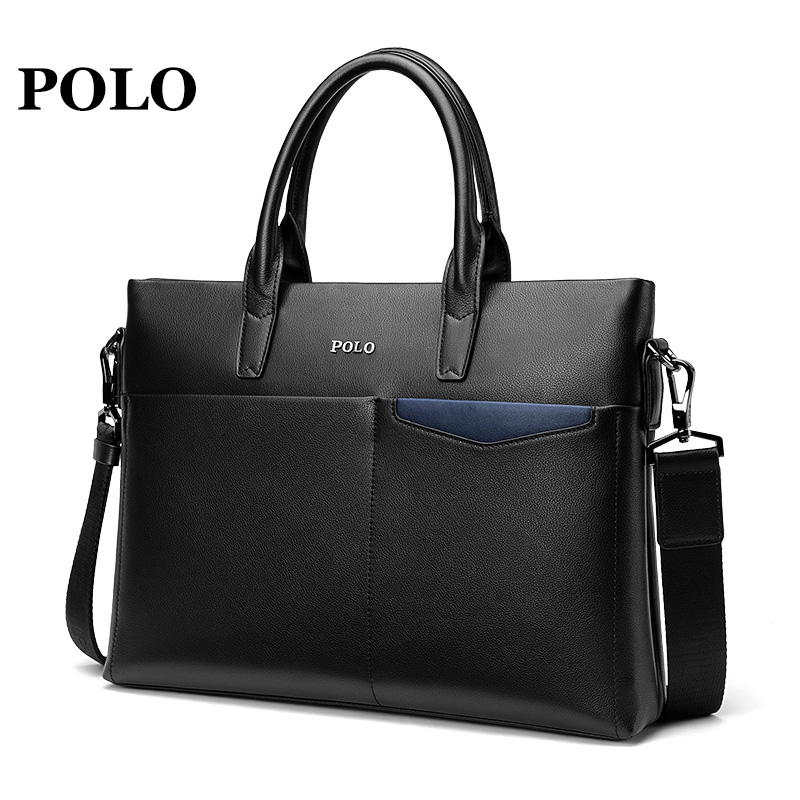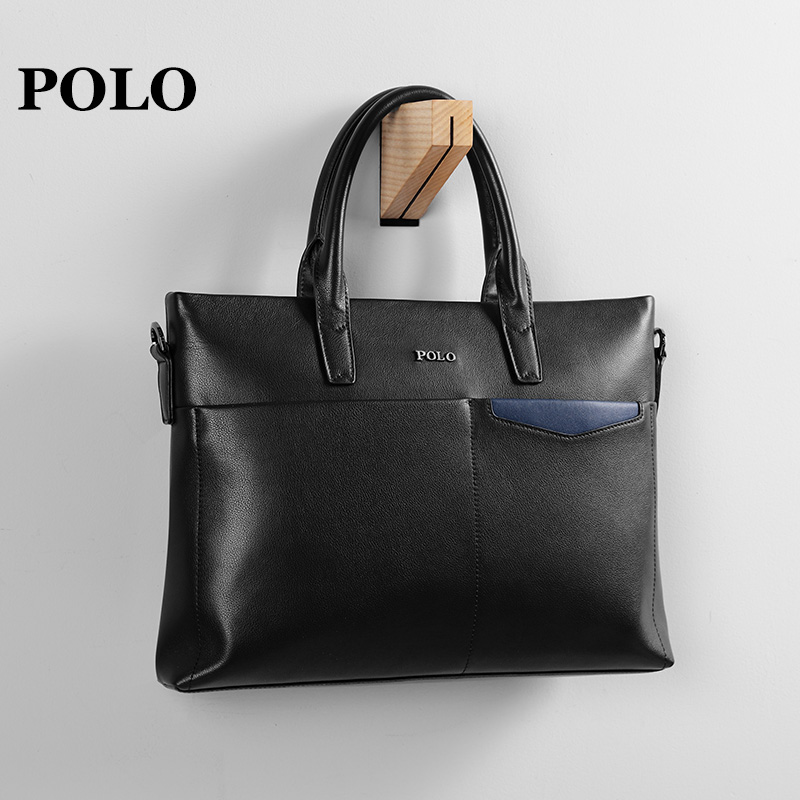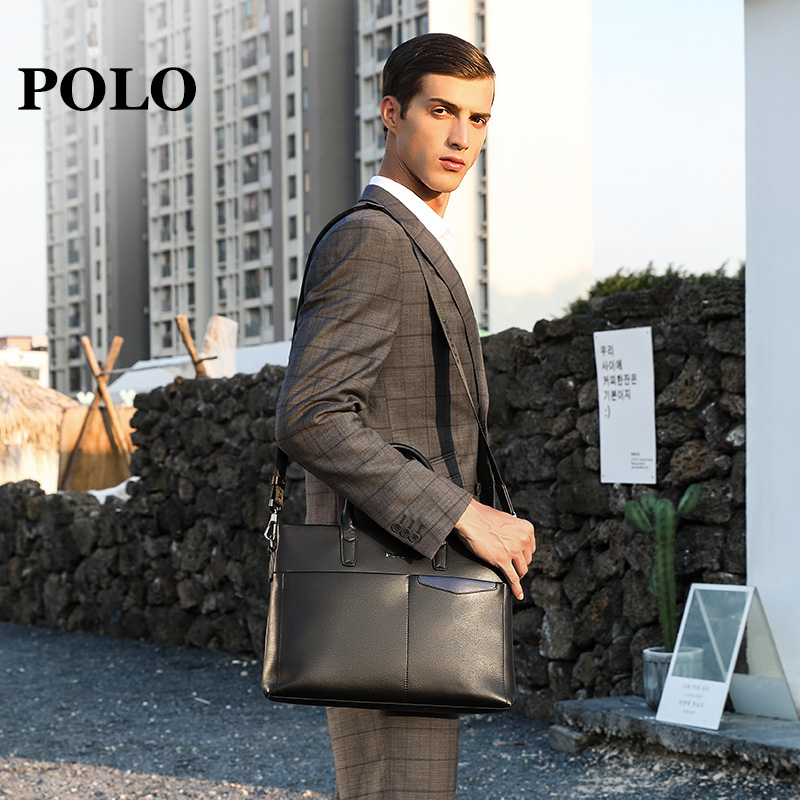 Polo new briefcase men's leather business bag fashion shoulder Messenger bag large capacity horizontal section simple handbag