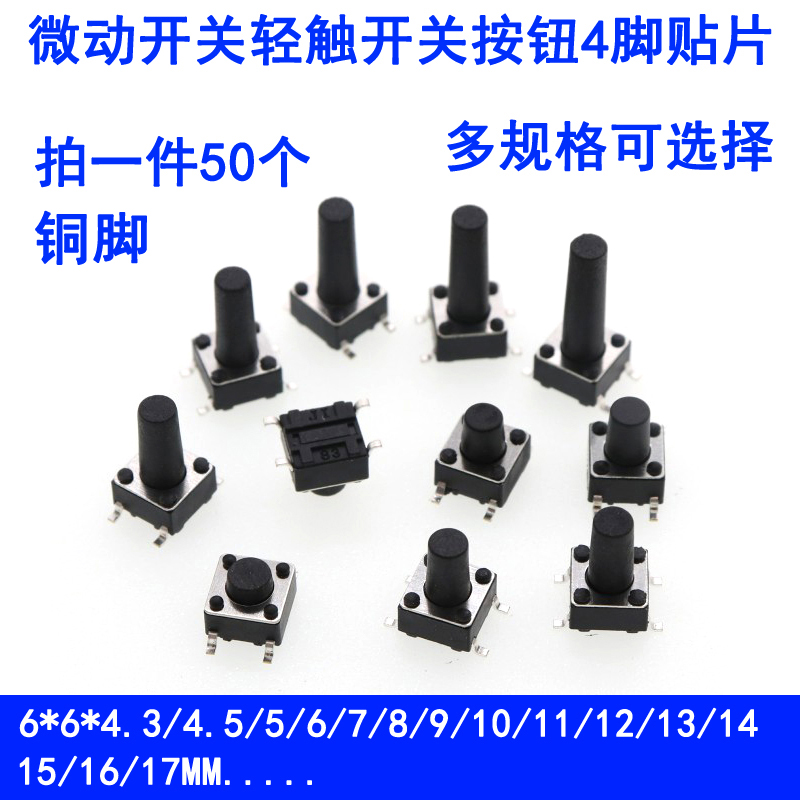 Patch light switch button 6 * 6 * 4 3 5 6 7 8 9 10 11 4P patch copper feet high temperature resistant