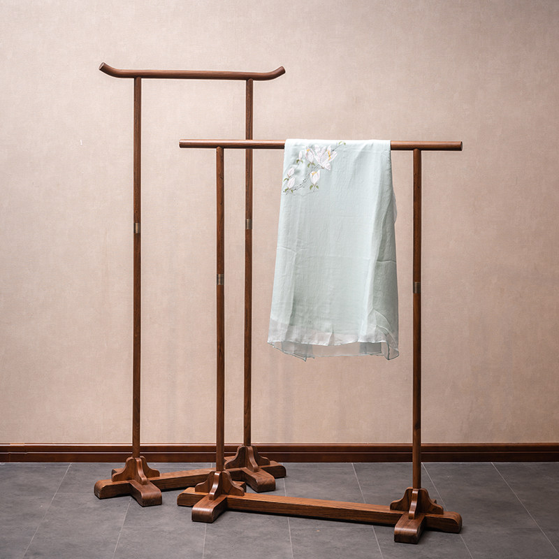 New Chinese-style solid wood coat rack Zen clothes hanger floor-to-ceiling bedroom old elm simple hanging bag clothes rack home