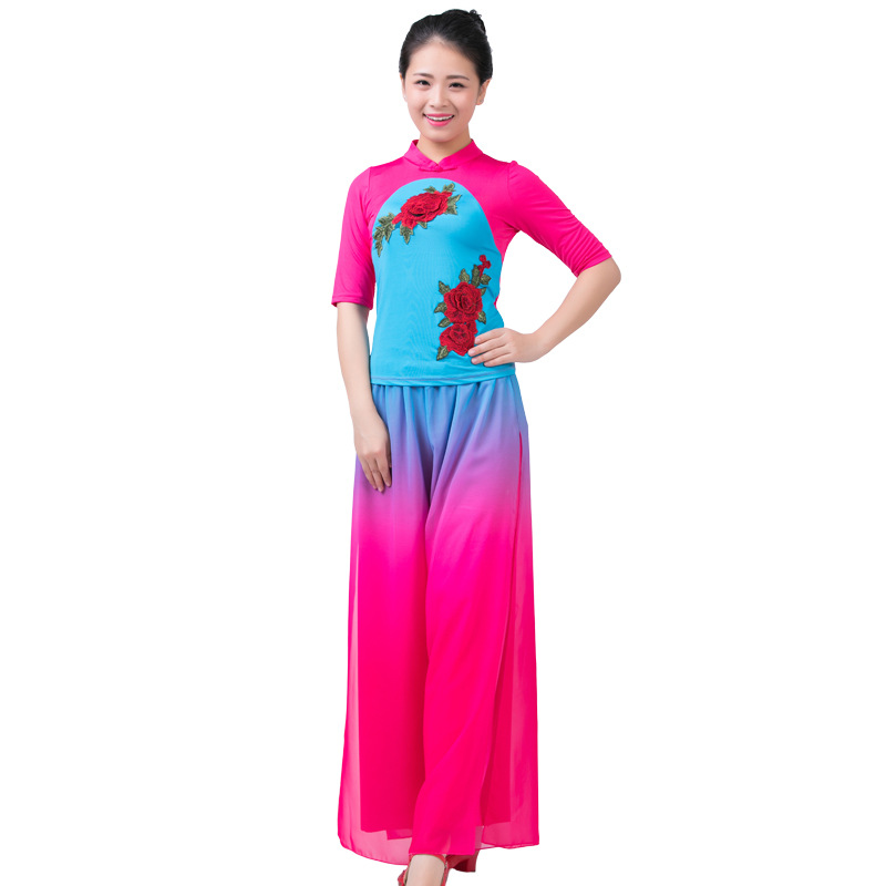 D69 red and black gradient set D69 black red Middle sleeve top D69 red black gradient pants D69 blue body middle sleeve top D69 blue body trumpet sleeve top D69 blue gradient pants D69 Rose Red Middle sleeve