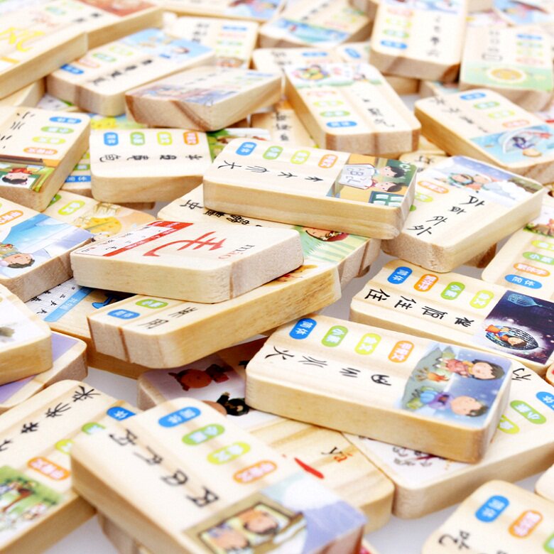 Children's Puzzle Toys Wooden 100 Cognitive Literacy Building Blocks Rounded double sided Early teaching Chinese characters dominoes