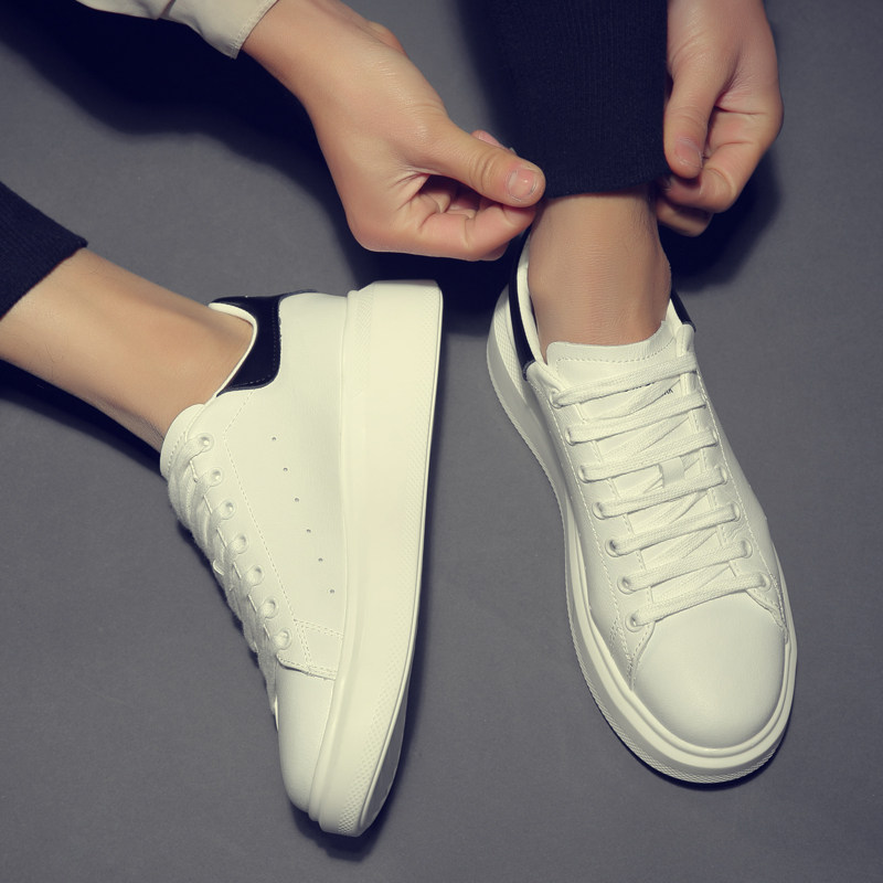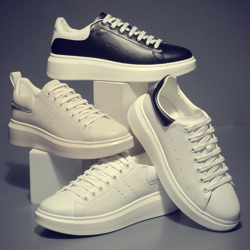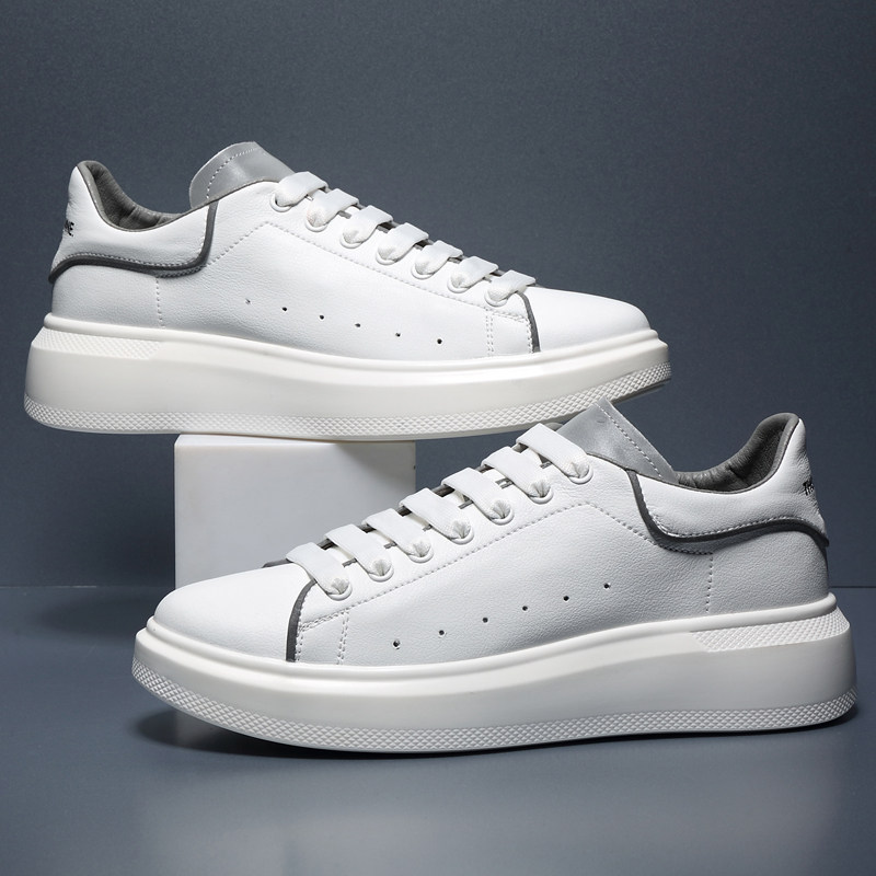 Reflective white shoes men's Korean version of the wild trend of breathable sports casual shoes thick-soled white shoes men's leather