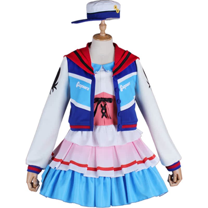Chika Takahai (without hat)Riko Sakurauchi, Konan Matsuura, Daiya Kurosawa (without hat)Yutaka Watanabe (without hat) Zengko Tsushima, Kita, Hanamaru Kobara, Ju Li (without hat), Ruby Kurosawa