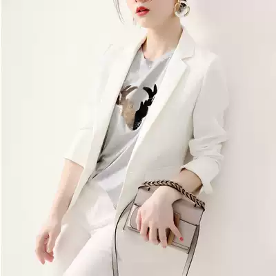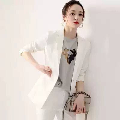 Japanese 2021 autumn new one button medium and long version temperament Joker suit jacket female slim white suit