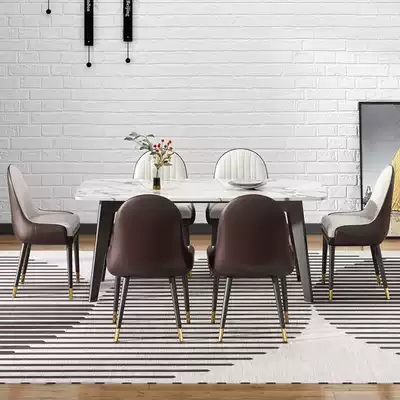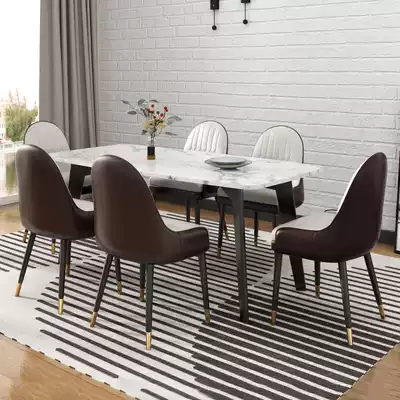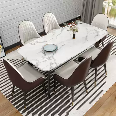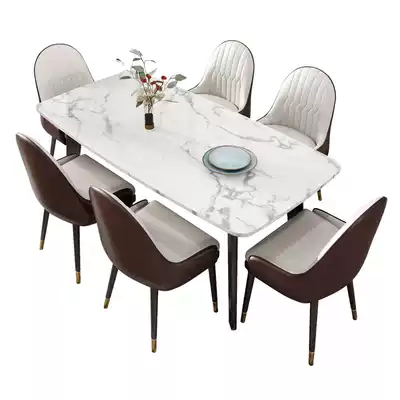Nordic rock plate dining table and chair combination Extremely simple modern living room rectangular marble solid wood table household set
