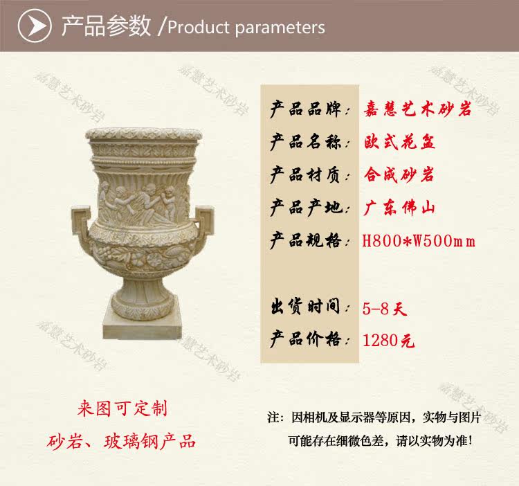 Jiahui Sandstone Glass Fiber Sculpture Garden Forest Landscape Villa Hotel Leisure Clubhouse Decoration Eu Flower Basin Flower Bowl