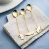 Japan elfin High Sang metal stainless steel gold plated coffee spoon 3-piece set Cat fish family happy mixing spoon small spoon