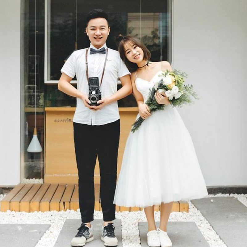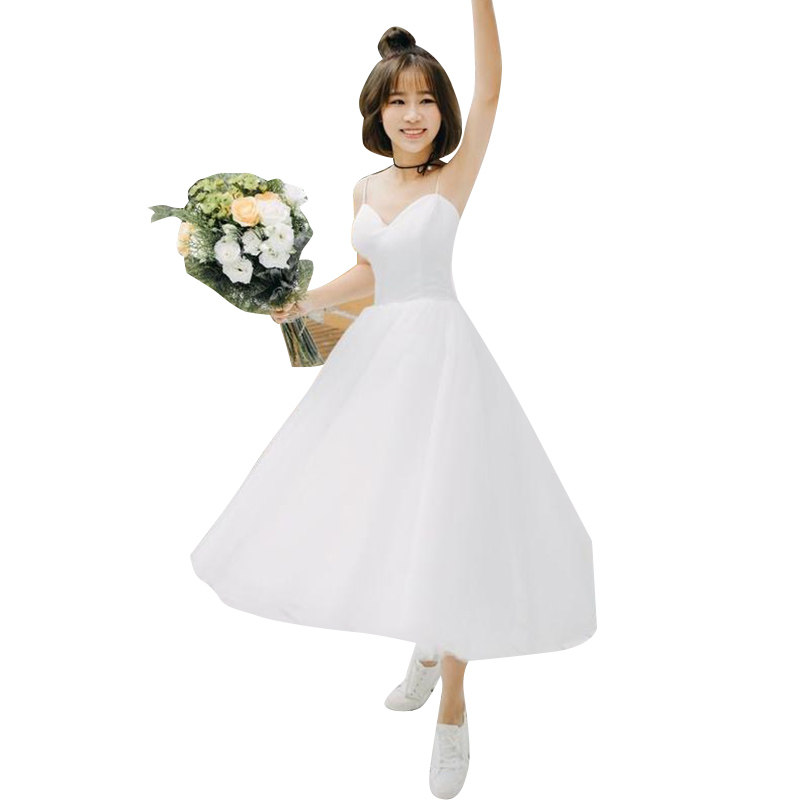 Simple light wedding dress 2021 new summer forest department photo bride wedding travel graduation suspender tutu everyday