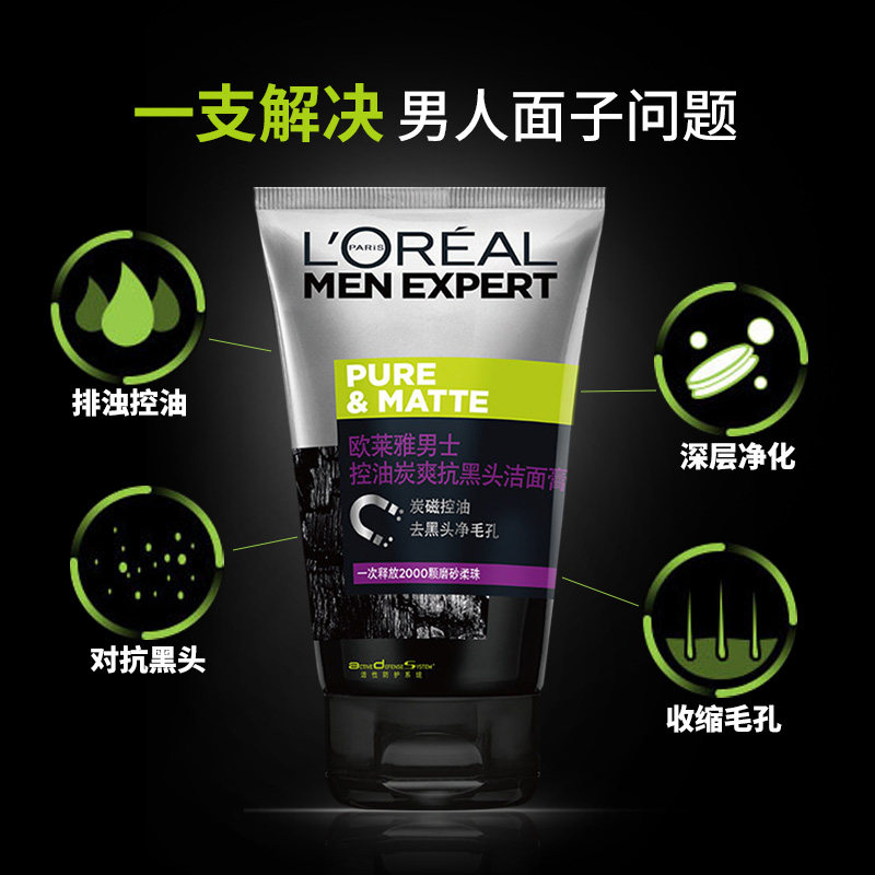 Paris Laiya men's facial cleanser oil control acne anti-blackhead facial cleanser pack shrink pores in trial pack 50ml*3 sticks