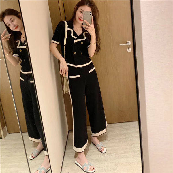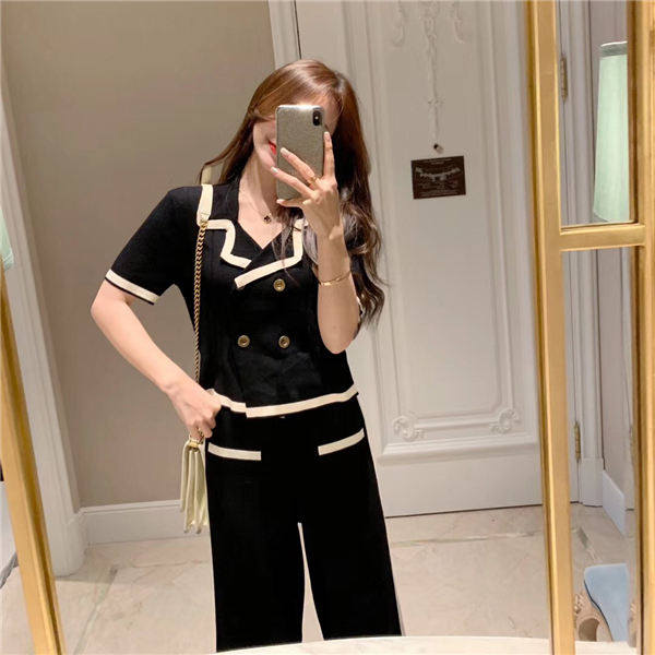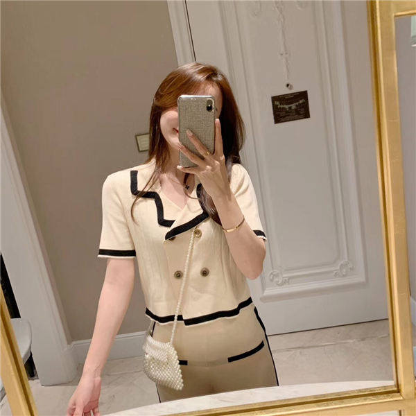 Light Fan Yu Miss Suite girl 2023 Spring new chic Han Fan double row sweet tops with sweet legs